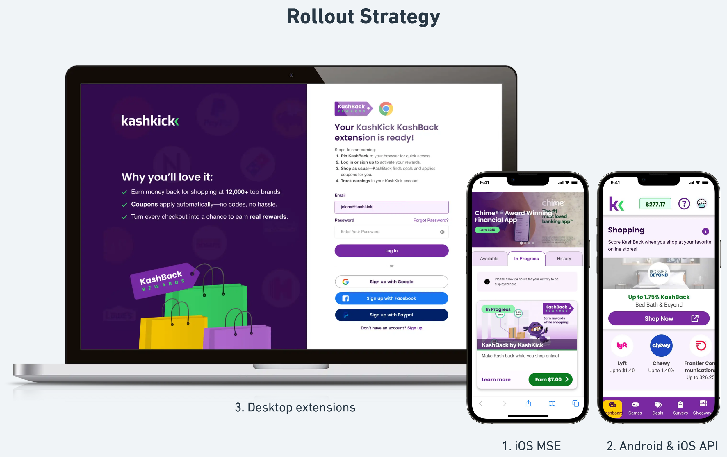 Introducing Wildfire required more than a UI integration. The shopping rewards system touched nearly every part of the KashKick platform, spanning mobile apps, browser extensions, backend services, analytics, support, and marketing systems.