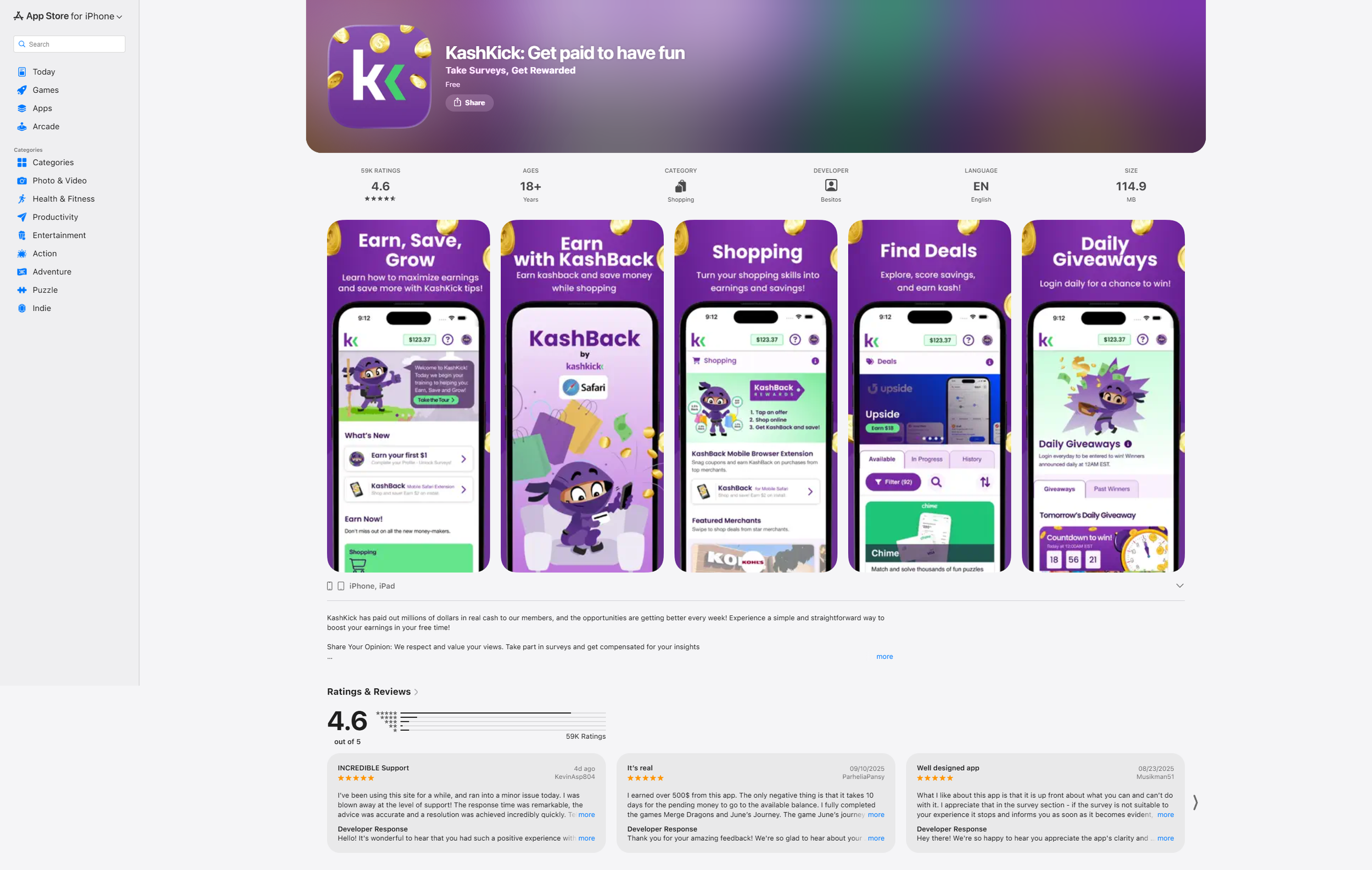 Shopping rewards live across the KashKick app experience