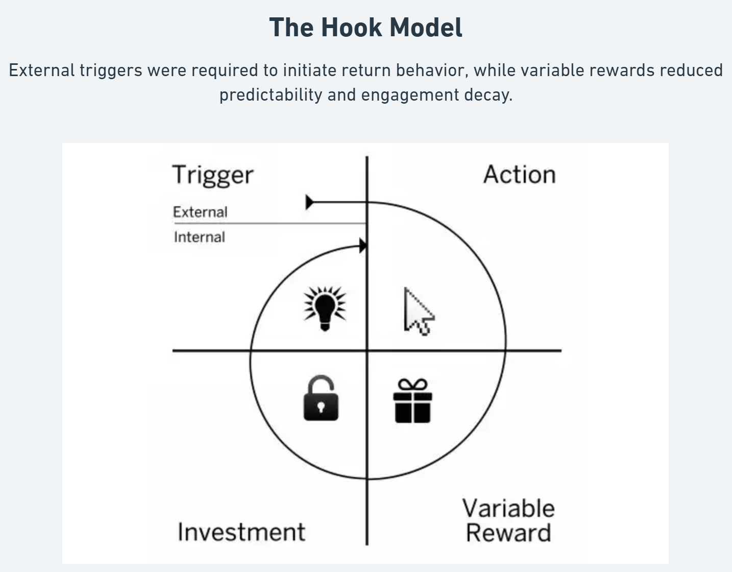 Lightweight mechanics such as polls and surveys consistently outperformed more complex interactions, driving improvements in activation, DAU, and short-term retention, particularly for new users. External triggers and variable micro-rewards supported repeat participation, while richer mechanics showed diminishing returns without deeper platform investment.