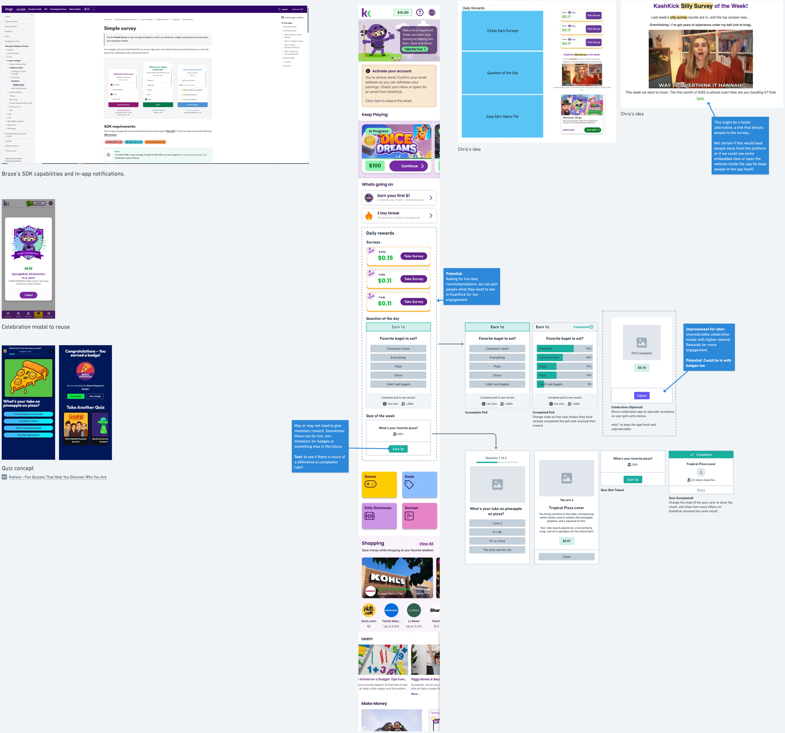 Early concepts focused on fast-to-build mechanics (polls, surveys, quick games) with randomized micro-rewards, used to extract engagement signal before committing to core rollout.